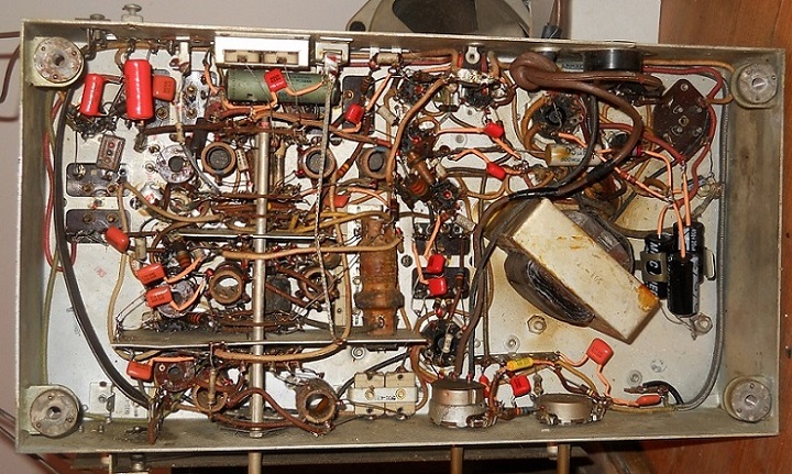 Recapped in 2017 includes 20+ Orange Drop caps, replaced a burnt resistor in one of the IF transformers. I recently bought a NOS 6AL7 tuning eye tube, needs repair to socket wiring, shines bright all the time so I’ve left it unplugged. Something is misswired or shorted.