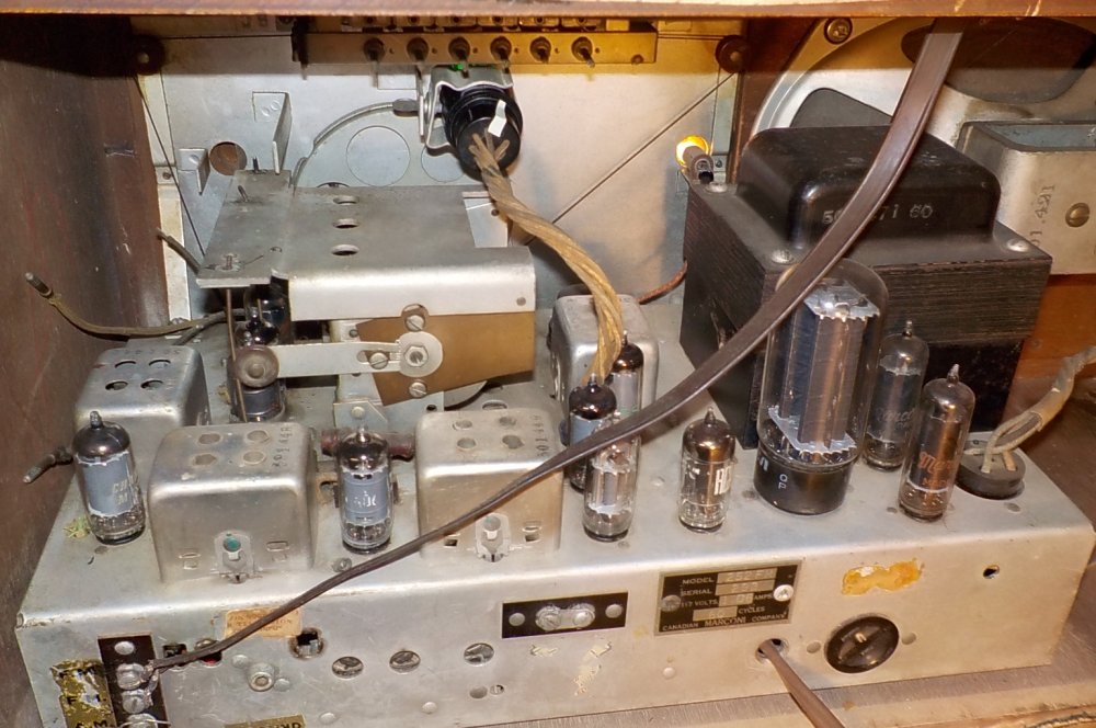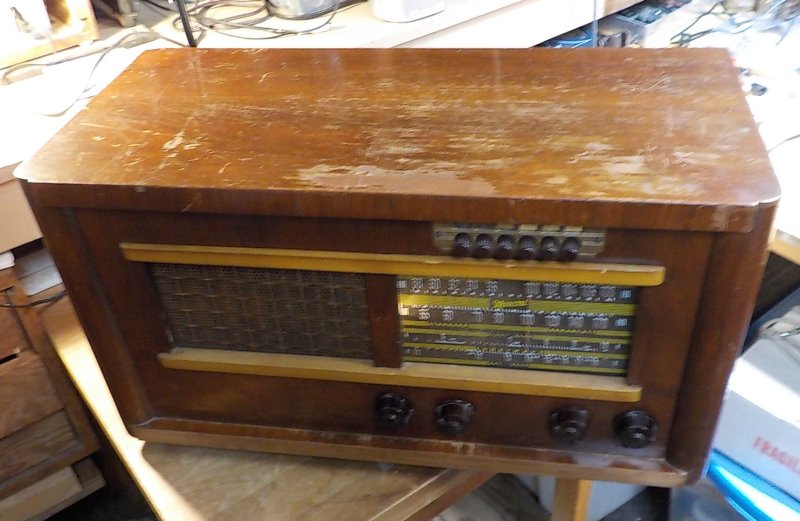 1949 Marconi 252FM includes copies of the manual, works fairly well, FM could use an alignment maybe a couple of 6AU6 tubes. Output is push-pull 6AQ6, 5U4 rectifier.