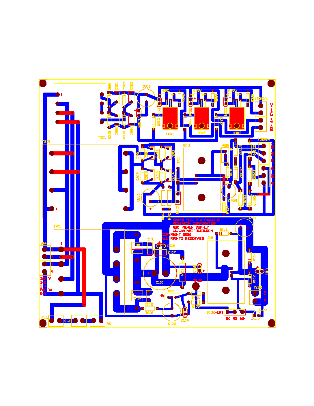 Just finished the PCB design for a universal ABC power supply. The picture of the PCB design is attached.
