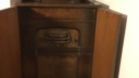 Priceless vintage antique radio / phonograph Measures 36 high, 27 wide, 17 deep Serial Number 37841 Is a combination radio/phonograph set, designed and produced in 1929, just as RCA was preparing to purchase The Victor Talking Machine Company. It was one of the last products to be engineered and produced by Victor. Both walnut and mahogany finishes were available (this one is walnut). Approximately 108,000 RE-45’s were produced in 1929 and 1930. It sold new for $275.00. 6 tube TRF neutrodyne AM-tuner, with separate 4-tube amplifier, electrodynamic speaker and Electrola Record Player. Tuner: 5-stage Tuned Radio-Frequency (TRF) tuner Amplifier: Model 245, 15 Watt transformer coupled push-pull amp. Cabinet: Walnut lowboy console, carved front plate, 2 hinged doors. Dials and knobs: illuminated curved celluloid vernier slide rule dial, 3 wooden knobs, on/off switch, separate volume control knob for Electrola Kept in a smoke free environment The unit has not been refinished or refurbished but has almost all of its original parts. Legs have been removed but with some work they could be reattached. Has not been plugged in for many, many years so cannot guarantees that it works. It is a beautiful piece of radio history that has been in my family since new! Would like to sell as a complete unit but would entertain offers on individual pieces of the radio/phonograph.