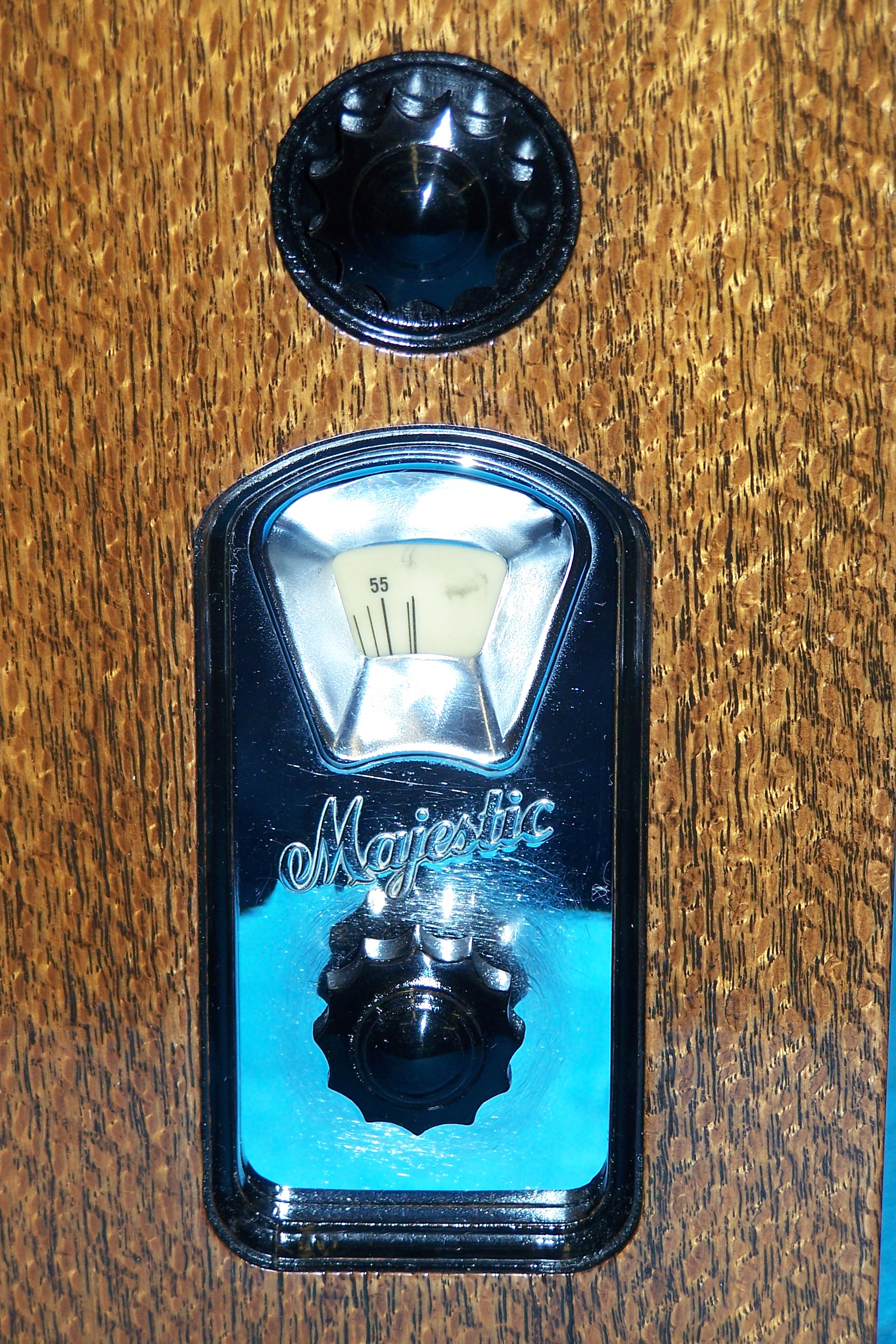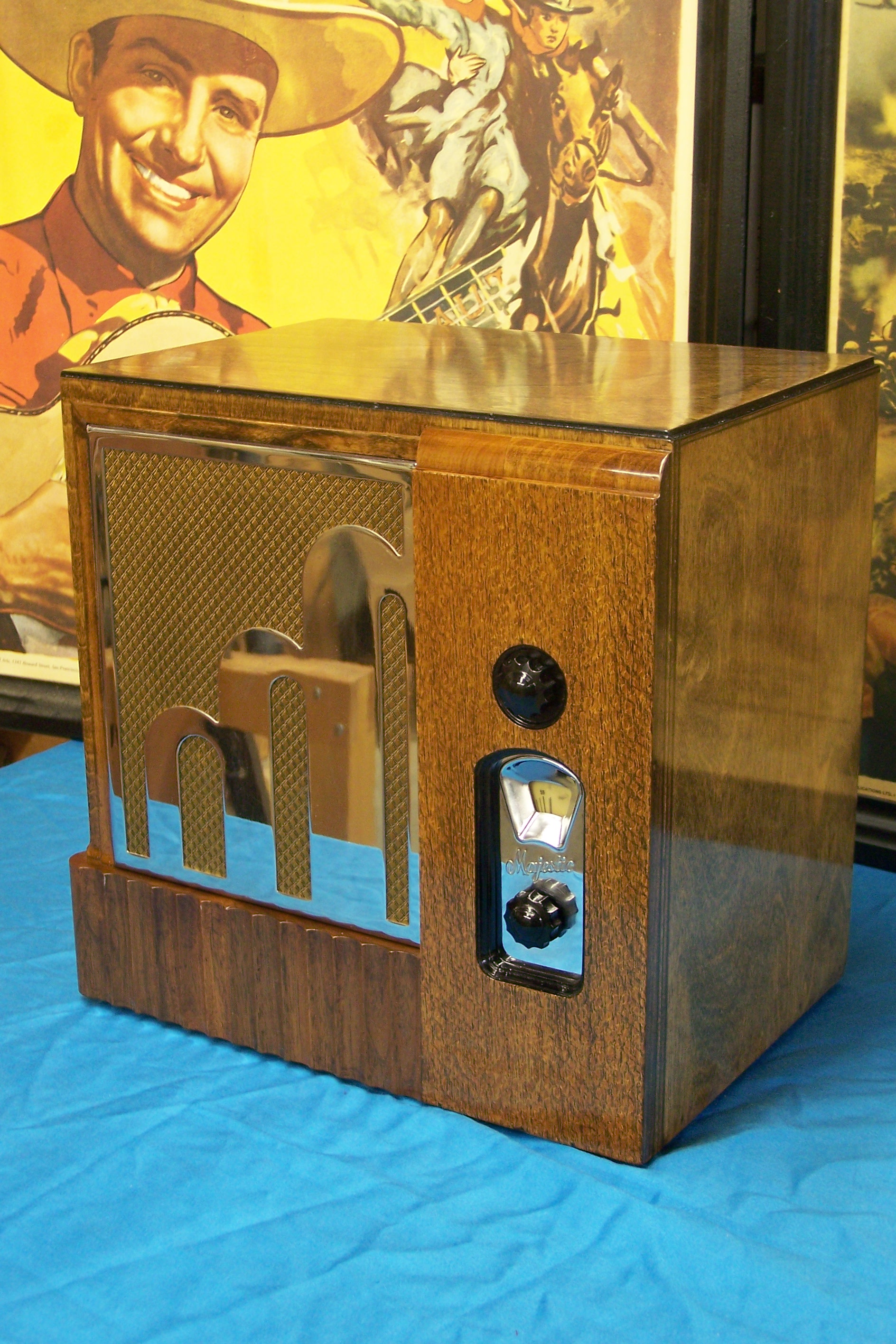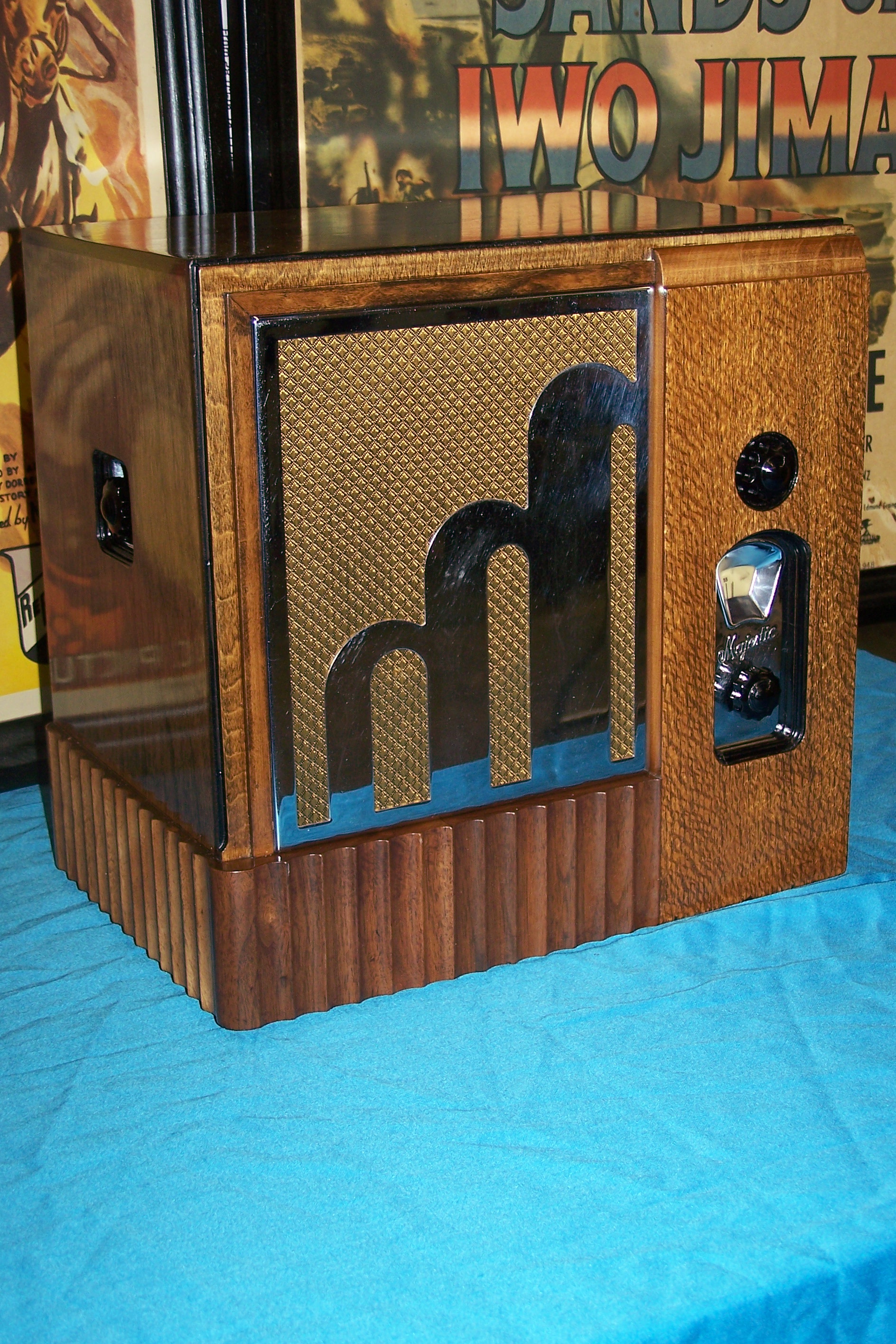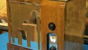 Attached are pictures of my completed 1933 Grigsby-Grunow Majestic 463 “Century Six.” It appears to be an interesting blend of art deco and machine age design. The photos were taken by Tom Singletary of Statesboro, Georgia, who restored the electronics and the cabinet. The set used several G-G spray shield tubes. While Majestic spray shield tubes are still available new-in-box with some searching, they often are defective from the git-go. I have learned to avoid all U.S. Grigsby-Grunow Majestic-made tubes, both shielded and non-shielded.