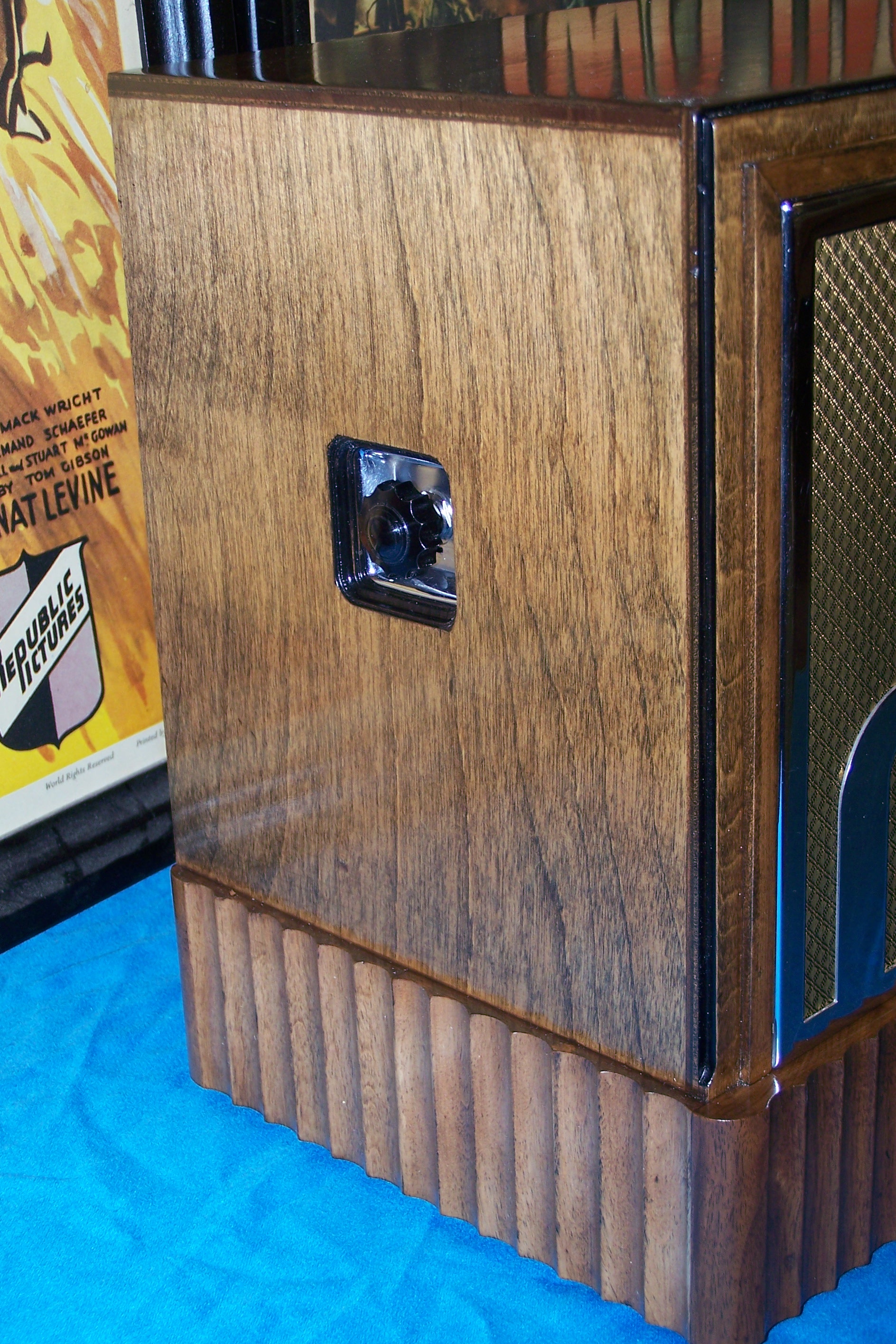 This appears to have been an early production piece, made just as G-G was diving into bankruptcy but before they ran out of walnut in their cabinet plant. Later examples were constructed of poplar and coated with an opaque lacquer to hide the absence of grain.