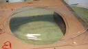 Once warm youll see the plastic want to droop.do this part quickly before the plastic cools off… take it out and push the outside part down. that way the lens portion isn’t going up against anything that can mark it. It should have some curvature and you want that.If you find the plastic gets stuck then you could try at a lower temp or remove it first but I was successful with leaving the film on both sides and I think it might come out a bit more perfect that way. as I recall I might have had to pick some little bits of that surface plastic off the very edges but it wasn’t too bad. if the plastic wrinkles it can kind of get trapped but it didnt’ melt into the lucite or lexan or plexiglass or whatever you call the stuff.