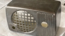 As mentioned in an earlier post, the Model 542T was described as being ‘a little set with “hybrid” cosmetics.’ The case looks like the Model 440T but the knobs are the same as were used on the Hopalong Cassidy Model 441T (i.e. black with silver centres). There is little information on the colours that were offered, and so I chose to paint this one red, like one of the ‘Hoppy’ colours. The original colour of this set was probably cream, as evidenced by some overspray inside, but at some time the set had been repainted ivory and the new paint was badly blemished with fisheyes as shown in Figure 1.