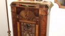 It would look nicer if it were in my house 😉 other than that it is hard to find fault, What a beautiful radio and a magnificent restoration. look at that veneer ! Nice job Dan!