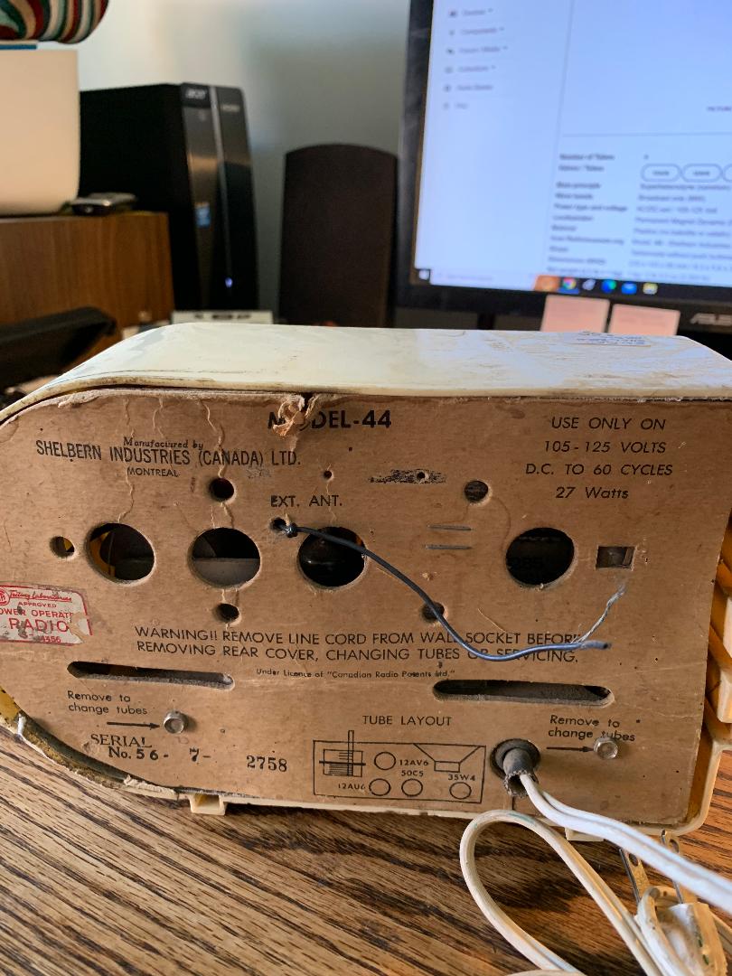 Hi all, Always on the look out for Canadian only radios and recently found this 4 tube Shelbern mini. It’s my first 4 tube radio and I’m amazed how little in the way of parts it contains! The plastic case is pretty rough, but not cracked or warped. I should be able to make it shine! Never heard of Shelbern (manufactured in Montreal) and info is scant. No shematics to be found at all the regular places, but it’s so basic I don’t think it will be an issue. Has anyone encountered these radios before?