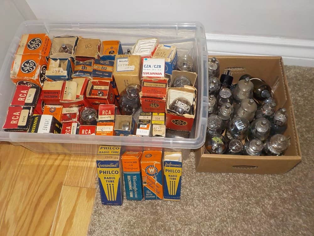 otherwise we’ll discuss relative values and make a deal.There are 35-40 1930’s radio tubes, half of them in correct boxes, going probably to a vendor, multiple 24A, NOS 5V4G, 6SN7’s, plus multiple used pulls with no boxes, but with filaments intact.